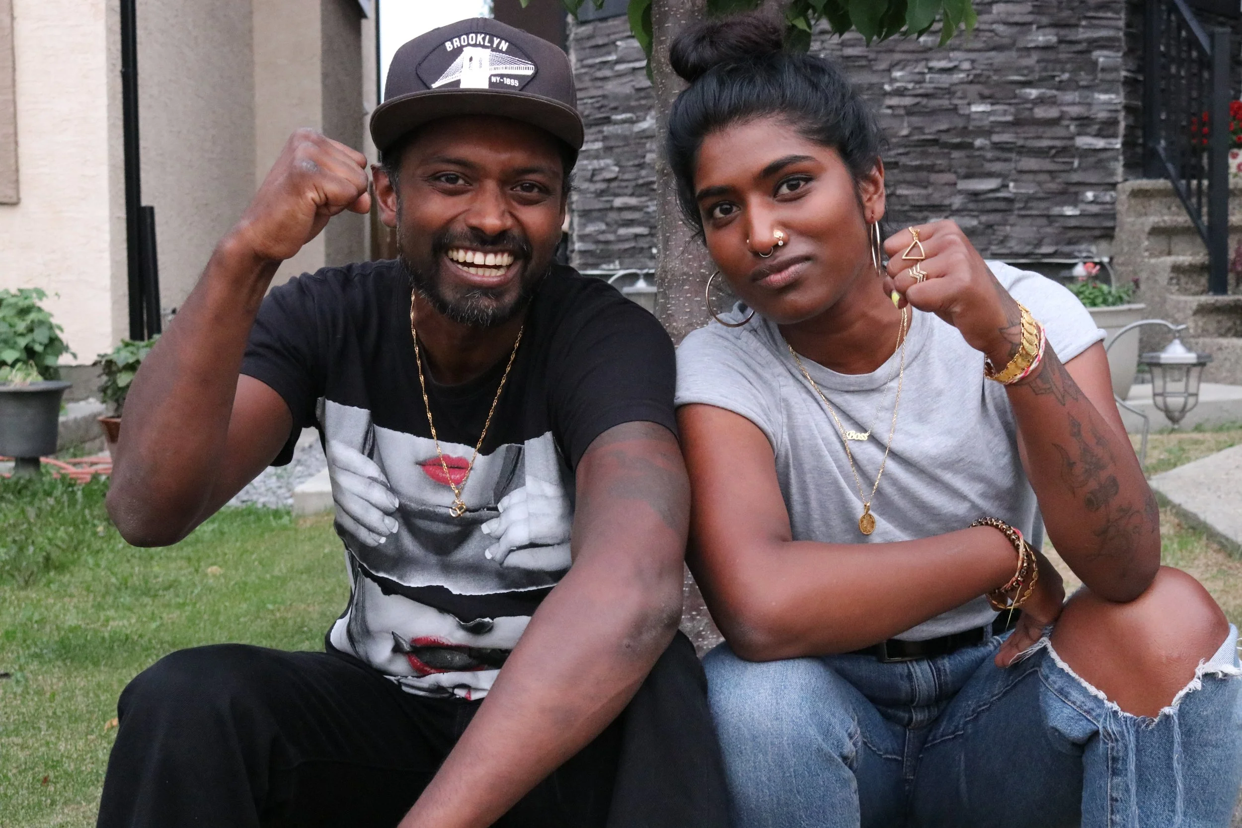 Angelene and Ashneil with XOXUnknown at exhibition opening in May, 2023 - Calgary, Alberta
